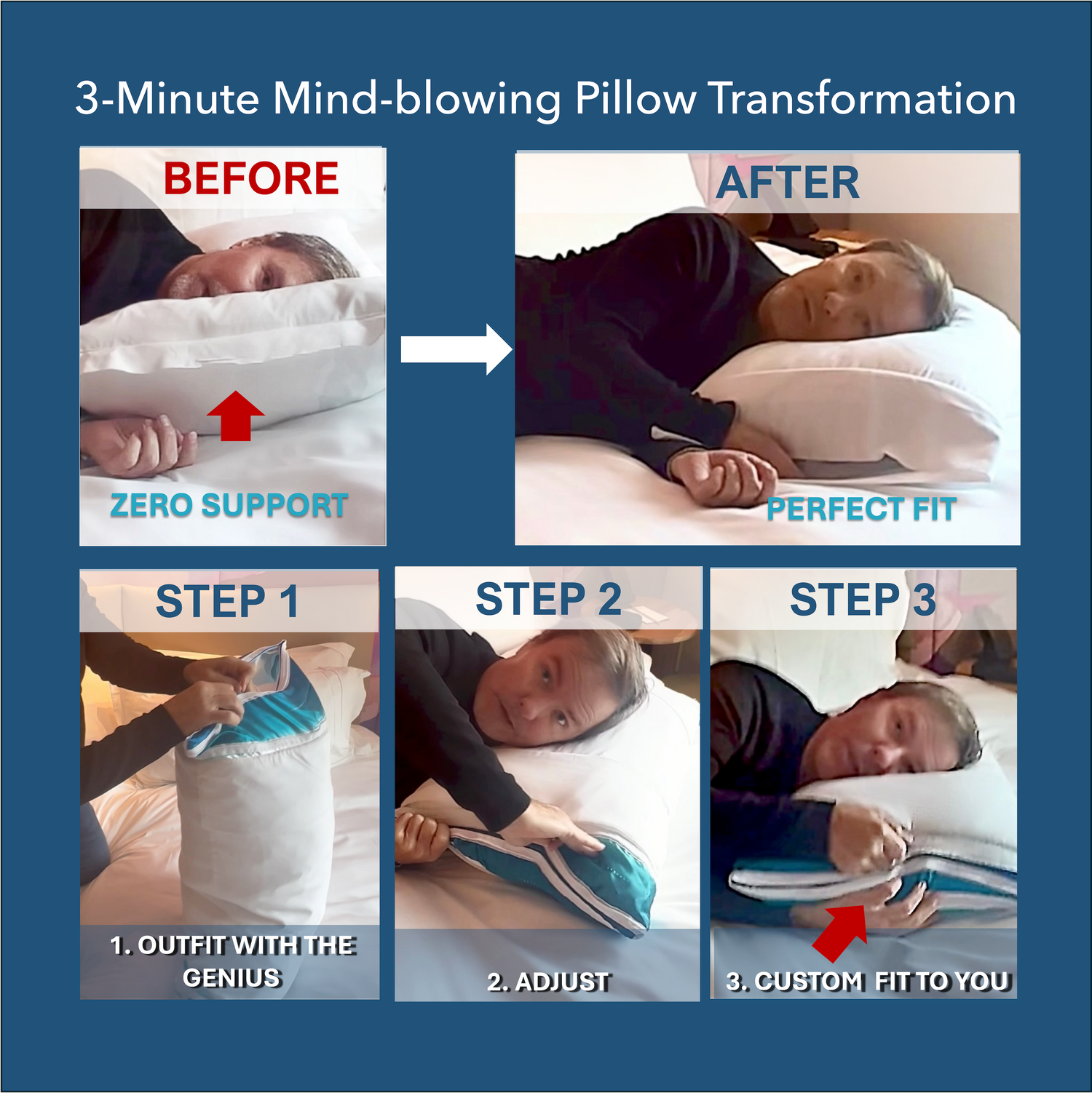 Experience all-night customized posture controlled comfort with our proprietary real-time pillow height adjusting system.
